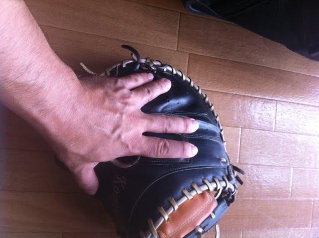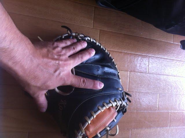 貴方のキャッチャーミットの指の入れ方は、どれですか?上から1.2.3