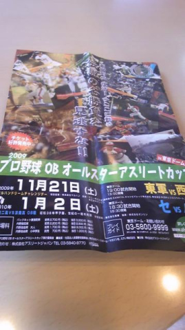 今から東京ドームで行われる2009プロ野球OBオールスターアスリートカップに行って来ます。もちろん、バッティングキャッチャーをしてきますよ。なんと清原さんや立浪さんも来るそうです。