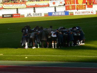 延長に突入。大きな円陣。