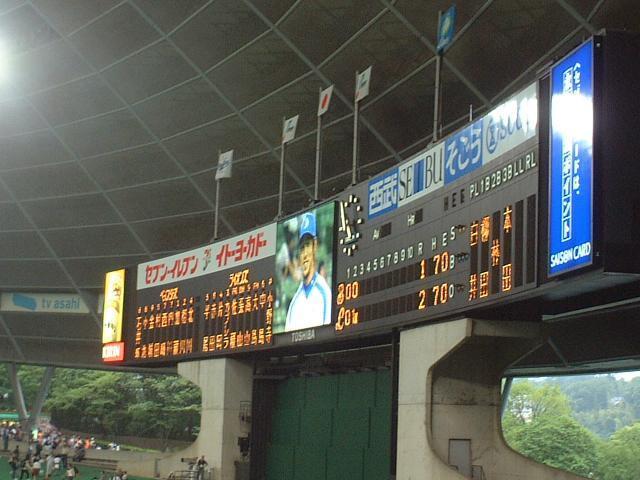 腰痛?でスタメンを外れた中島選手。途中の守備交代で出てきてサヨナラヒットを放つ。おいしいお立ち台(笑)