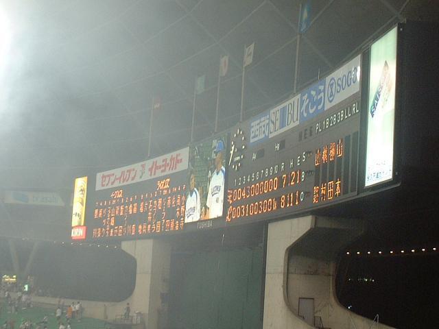 が、涌井投手の相方としてすっかり定着した炭谷捕手の久々の本塁打やブレイク中のリーファー選手の同点本塁打で追いつくと、延長10回、赤田選手への四球をきっかけに福盛投手が犠打を挟んで4四球でサヨナラ押し出し・・・しかも、ノーアウト2塁から満塁策のための四球が2つ。意味不明です。試合放棄かと思いました(笑)