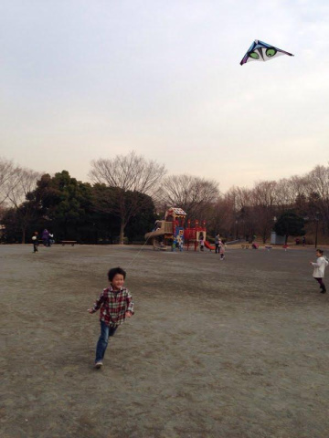 パパは100均でいろんなものを買い、子供たちと遊ぼーと気合を入れていったのだが、マイペースな子供たちはまずはブランコ、次はてつぼう、砂遊び、一通り公園の遊具で遊んでからパパ、たこやろう!