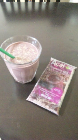毎朝、バナナと牛乳とミキサーで混ぜて「アサイーバナナオレ」にして飲んでます。