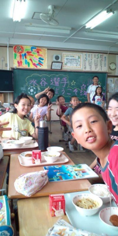 給食までご馳走になって、すごく懐かしかったしみんなで食べておいしかったー[d146]