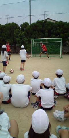 昨日は久津川小学校でサッカー教室でした[d25]みんなでリフティングしたりミニゲームしたり…本当に楽しかったです[d1]