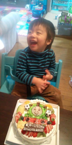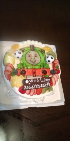 ケーキも嫁がパーシーのケーキを予約しといてくれてゆいとは興奮してたなぁ[d272]