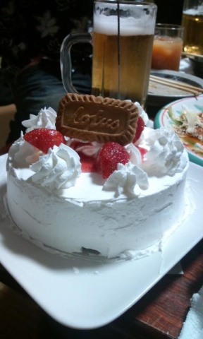 飲んでた居酒屋?のおばさんが成人祝いにケーキを出してくれました[e420]