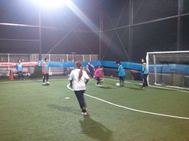 2人1組でのパス練習、ドリブル練習、ドリブル鬼ごっこ、コンビネーションシュート、そして最後にはゲームをしました。