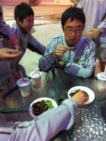 台中市に到着。軽いランニングをして夕食をすませて台中市内散歩また食べてます。明日は6時から練習開始です。