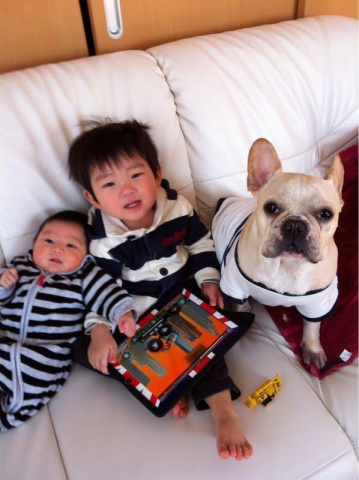 お宮参りしてきました!早いもので景都が誕生して一ヶ月以上経ちました。我が家の夜は動物園のようにいっぱい泣き声がします(笑)蒼士は奥さんを景都に取られ、僕と寝てくれるようになってくれてちょっと嬉しいです。やっぱり子供は可愛いですね。来週は初節句でイベントが多いですが、無事に迎えられて何よりです。父親としてますます頑張ります!お宮参りの良い写真がなく、モンスター3人組です!