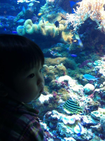 そして、やっと新江ノ島水族館へ…と思ったら肝心の蒼士は車中で爆睡!!強引に連れていき、入り口で起こすことに。かなり眠そうでしたが魚を見た瞬間テンション回復。終始楽しそうだったので良かったです。