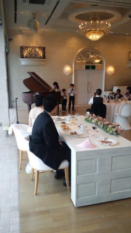二人へのプレゼントってことで奥様のお姉さんがピアノを弾き子供っちが歌う。