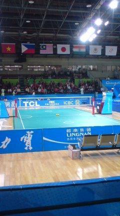 観客席の私達は中国の公安の方々に周囲を囲まれ厳重な警備の中、試合が始まろうとしています。異様な雰囲気です。長いこと国際大会を経験してきましたが、こんな感じは初めてです。スゲ〜試合になると思います。ガンバレ!日本!