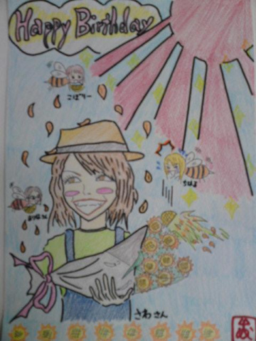 さわさんの誕生日プレゼントに描いた絵をこぼりーに送るの忘れてた[e350][e263][e329]