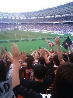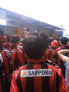 駅でサルバトーレさんと待ち合わせして、スタジアムで2人と待ち合わせる予定がそこらへんのマンションの入口で発見→4人で味スタ→アウェーゴール裏へ札幌サポ結構来てましたね。