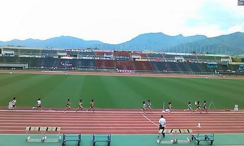 同じ敷地内にある中銀スタジアムで、中学生の陸上競技大会やってました。サッカー観戦ではトラックのあるスタジアムは好きではありませんが、メインスタンドからの眺めは素晴らしかったです~気持ちいいので暫く眺めてました