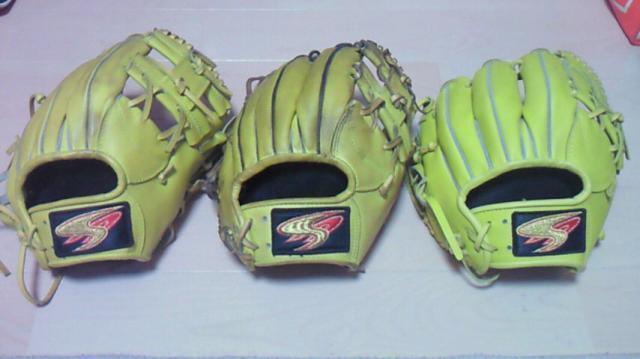 左は私のグラブです(キャッチボール用&草野球用グラブ)。
