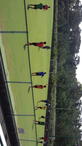 3人組になって、片足だけのドリブル、足の裏を使ったドリブル、などなど…色々なドリブル練習をしてました[e219]