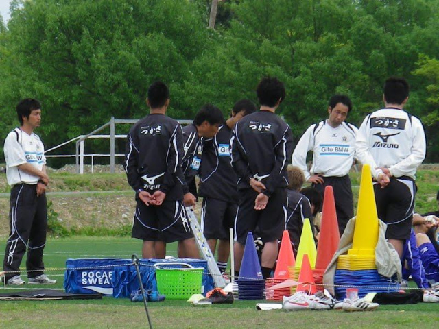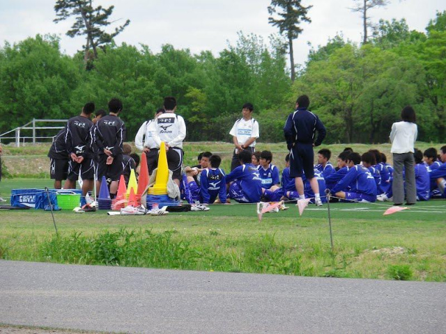 バックアップメンバーは、パス練習の後9人対9人でミニゲーム。