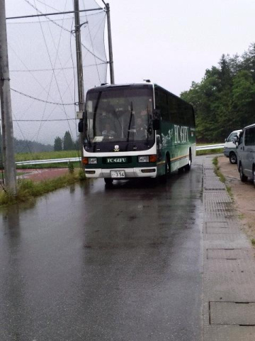 きましたー 選手を乗せてバスが