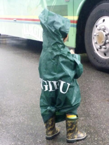 選手を乗せたバスはしぃちゃんに