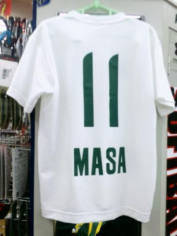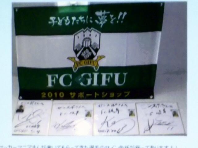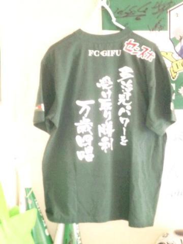 カウンターに手を今です FC岐阜ステッカーをペタリ