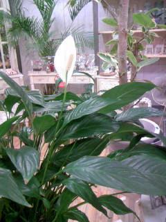 ところでお店に置いてるスパティフィラムの花が咲いてましたー☆