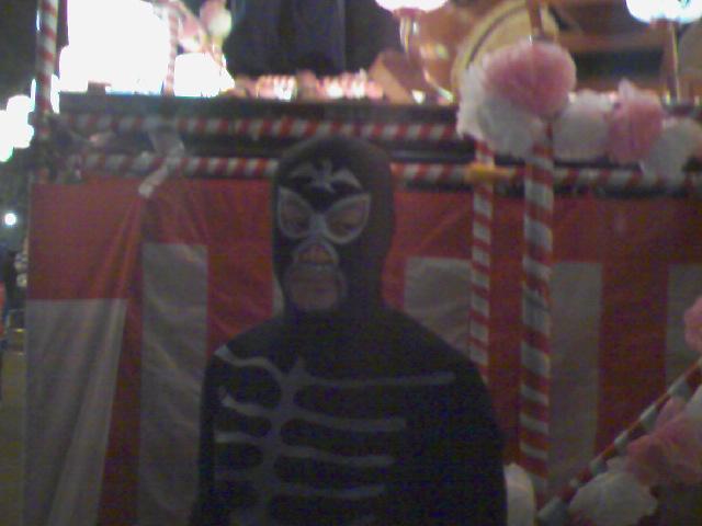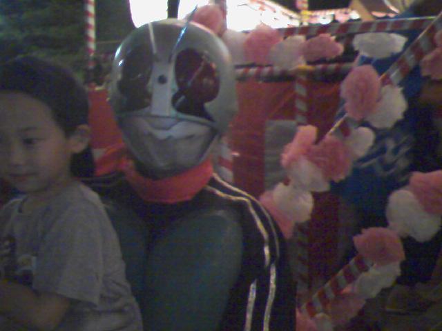 ヤグラを回りで盆踊りは恒例行事だが、この祭はスーパーヒーローショウーもある。