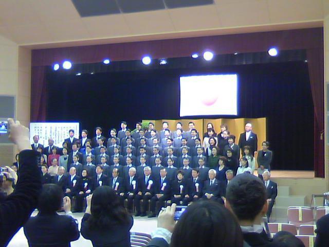 中に入るともう新入生が壇上に整列し、記念撮影会真っ只中!!!