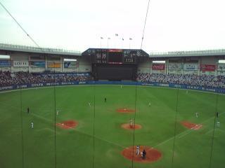 千葉マリンにて、交流戦(対ヤクルト)を観戦中で。