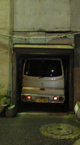 めちゃくちゃ狭い中に、軽ワゴンがすっぽりとはまっています。