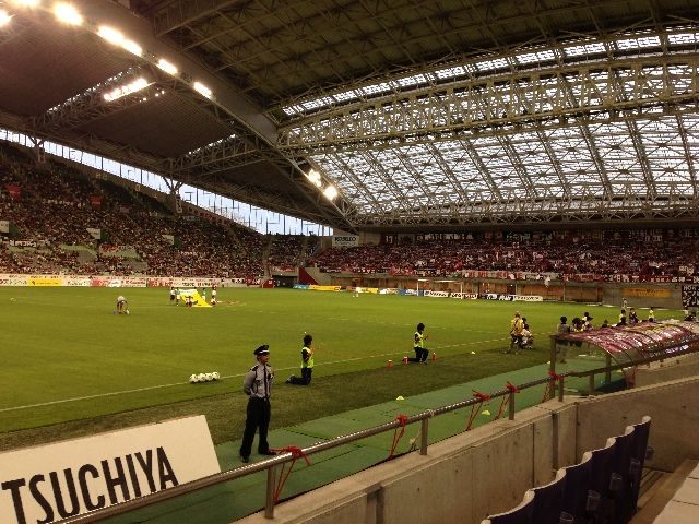 J2 第24節 ヴィッセル神戸戦3連休だったので、神戸まで遠征してきました途中、豪雨と雷もあり…観戦が心配でしたがこのスタジアムは、そんなの関係なしいやぁ~天候を気にせず、サッカー観戦できるって凄いですねぇ~さて、試合の方は序盤から神戸がボールを支配する展開。都倉選手の高さとカターレ富山の3バックの両サイドのスペースを付く攻撃に、危ない場面が…何度も何とか0-0で、折り返すも後半、神戸はカターレ富山のゴールをこじ開けようと縦パス、サイドチェンジ、アーリークロスなど攻勢を強めてきました。それでも、カターレ守護神・守田選手のセービングは神懸かっていました何度も神戸のシュートをブロックいやぁ~守田選手じゃなきゃ、何点ゴールを許していたかっ ってくらいでした。しかし、後半43分。遂に均衡は崩れる事に…ポポ選手の速いクロスに、ピンポイントで合わせたマジーニョ選手が、ゴールを決め失点を許してしまいました結局、これが決勝点となって1-0で惜敗。ん~あともう少しだったのに…と悔しい敗戦となりました。まぁ、試合内容は悪くなかったです。あれだけの猛攻を良く守ったと思います。スコアこそ、1-0ですが選手の個々と力は圧倒的に神戸の方が、上。それでも、チームとして良く守ったと思います。残念なのは、カターレ富山も中盤でパスを繋ぎDF裏のスペースを苔口選手が狙った何回かの決定機を決めて入れば、展開は変わったでしょうが…そこが、今のカターレ富山の実力なのでしょう神戸。スタジアムも雰囲気も、良かったです。多分、来年はJ1へ昇格でしょうから今度、このスタジアムへ来る時はカターレ富山がJ1に上がっての対戦ですねさぁ~気持ちを切り替え、次の長崎戦はアウェイでやられていますので、借りは返してもらわなければ