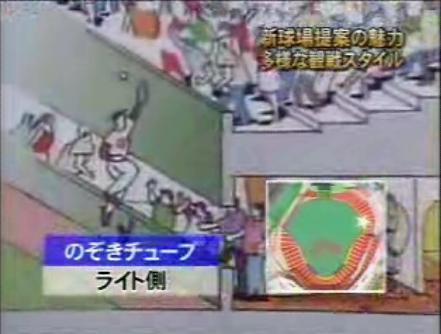 ライトスタンドのフェンスには、のぞき窓がついている席がある。