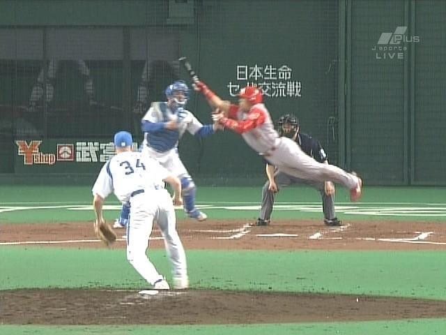 (5月31日 ライオンズ戦。石原選手スクイズ失敗)