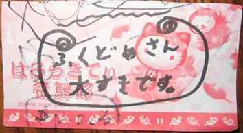 先日はPM10時を過ぎているのに何か書いていて、食卓に置きっぱなしだったので見てみると「ふくどめさん大すきです」