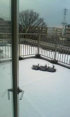 うちのバルコニーに積もった雪です。外と違って誰も足を踏み入れない世界なので今日になっても雪がきれいに残ってます。雪すごかったなぁ〜。