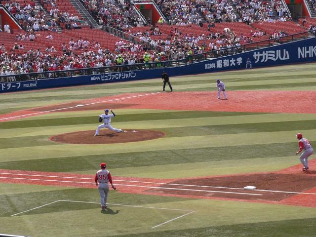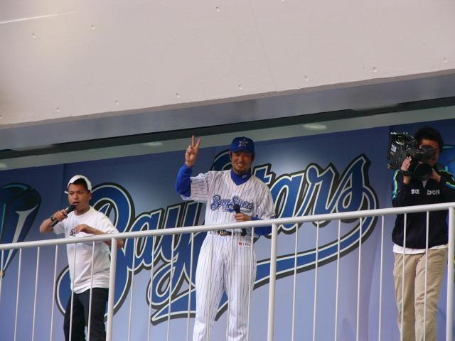外野手が一歩も動かないものすごい一撃でした。あわや場外の一発で打線を一揆に活気付けた村田は、すっかりハマの4番!今日はその後も2本右方向に長打を打ったところに村田の成長を垣間見ました。