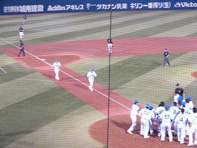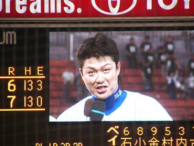 男村田が決めてくれました!昨日に続いて会社後にハマスタへ。携帯速報では先発三浦が早くも4失点。足取り重く席に着いたけど、直後に村田の追撃タイムリー2ベースに古木も連続タイムリー2ベース!その後相手のミスもありチャンスをもらいながらも勝ち越せず、1点とられては1点かえすという終わりの見えなさそうなまったりした展開。それを打ち破ったのは男村田のサヨナラホームランでした!
