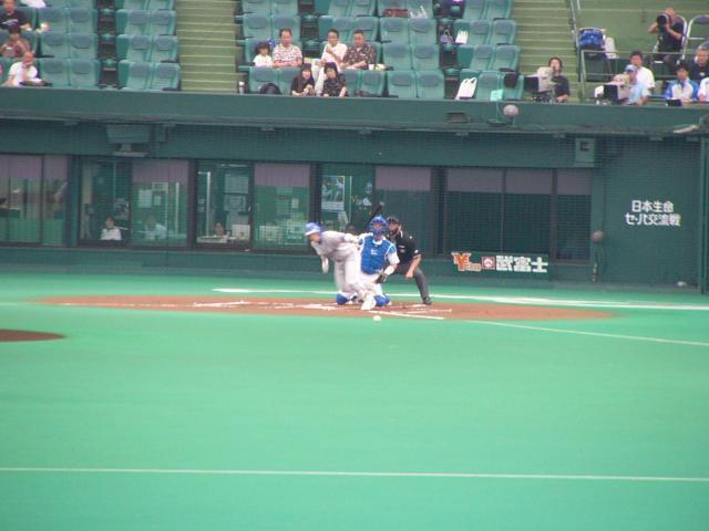 よく言うことであるが、野球はリズムである。リズムが流れをつくりゲームを決める。そんな感じのする試合でした。初回に小池・金城の連打でチャンスをつくり村田のタイムリーで先制点を奪う最高の出だし。好調の選手は守備でもよいプレーを見せる。あわやセンターオーバーの大飛球を小池が背走してジャンピングキチャッチ!スコアリングポジションに走者を置いた場面で三遊間を破りそうな打球に村田が飛びついてナイスキャッチ!直後に小池・金城がまたもや連打でチャンスをつくると村田が痛烈なピッチャー返し!が帆足のグローブに・・・最悪ノダブルプレー。ここまでよいリズムだったのに。その直後、走者を出しながらなんとか踏ん張っていた秦、二人走者を出しながらなんとか2アウトまでこぎつけカブレラもファーストファールフライに討ち取った、と思ったら種田が痛恨の落球。そして逆転の3ラン。。逆転されると追いつきそうにない。走者を出しても点がとれない。弱い時の横浜(大洋)の試合展開でした。残念。。。