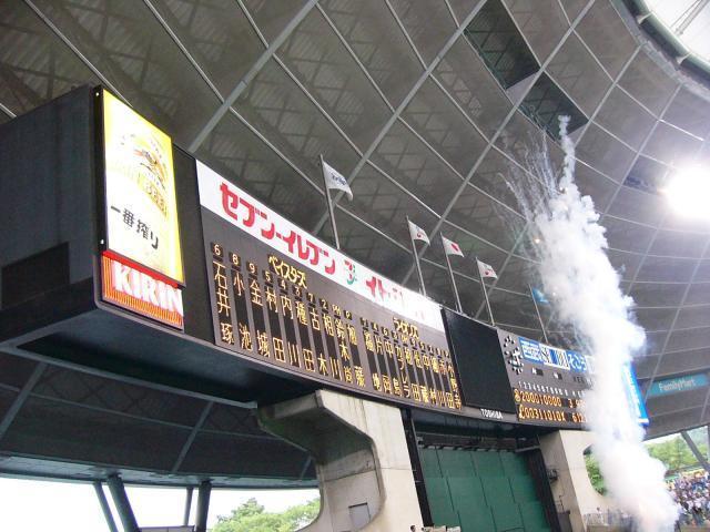 敗戦の瞬間。。。というかライオンズ勝利の瞬間にスコアボードに花火!派手な演出でした。