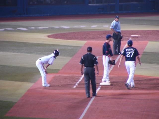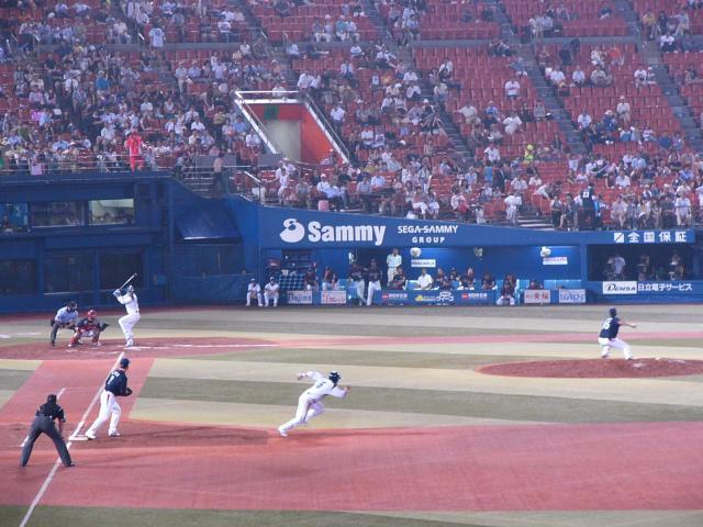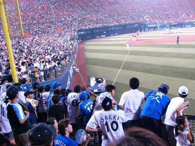 8回裏2アウト3塁、三遊間深い打球を放ったタクロー。観客からは「残念、アウトか〜」というため息がもれてたらセーフの判定。昨日につづいて疑惑の判定。帰ってからTVでみたらしっかりアウト。昨日といい今日といい、ベイに有利なジャッジだったので問題なし。(楽観的)
