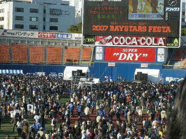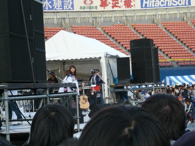 3組のうち唯一ベイのユニフォームを着てきたいきものがかり。ベイのファン感謝デーに来てるんだからそうすれば盛り上がるのにね。ほかの2組もそうすればよかったのに。