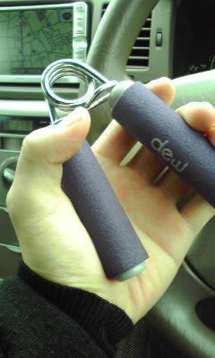 握力計を購入した事もあり、最近は車内にハンドグリップをおいて信号待ち等の暇なときにカチャカチャやってます。