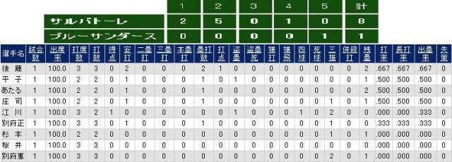 津市民大会 対サルバトーレ戦 の結果です。打撃成績は「出塁率上位順」で掲載されています。