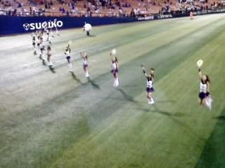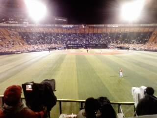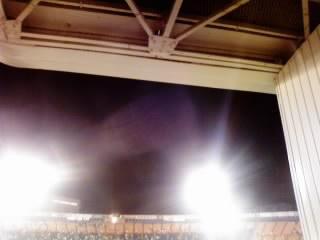 スタジアムには屋根がないが、スコアボードの真下なら、風さえ吹かなければ雨に濡れない。