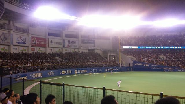 序盤は、西口の前に凡打の山…初回の1失点の唐川を打線が助けられず…イライラしていたら、井口の同点タイムリーで黒の山が大きく揺れ始め。終盤で、清田の逆転犠牲フライで逆転!!