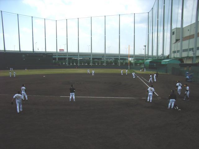 若虎達が練習してます。投内連携が終わり、今からバッティング練習です。