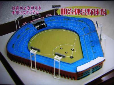 16日に近畿だけでしか放送されていない(であろう)「大阪ほんわかテレビ」(読売テレビ)で、ボール紙で作る球場模型が紹介されていました。