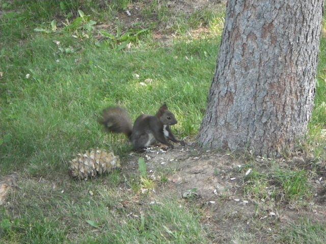 土曜日テニスの練習終わったら、コート横の木の根元にエゾリス発見!