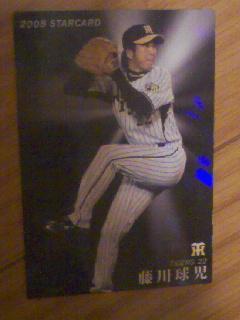 カードを見てみたらキラキラするカードが1枚………藤川投手でしたV(^-^)VV(^-^)VV(^-^)V 最後の1箱にキラキラ藤川投手ゲットです。